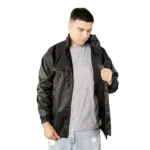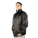 Incluye detalles funcionales como bolsillos con cierre para mayor seguridad, elásticos en las mangas para un mejor ajuste, y una capucha oculta con cierre para usar solo cuando se necesita. El cierre central está reforzado con una tapa con broches snap, ofreciendo un plus de protección contra el viento.